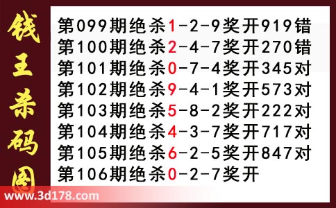 近期3d钱王杀码具体详情: