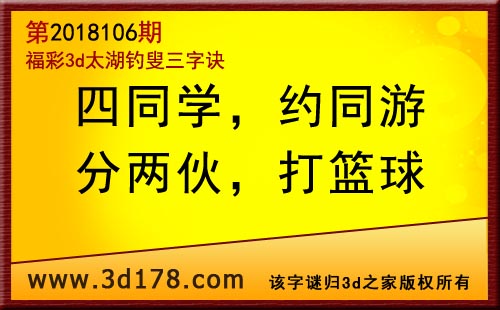 3d第18106期太湖字谜:四同学,约同游,分两伙,打篮球