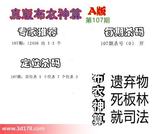 3d之家布衣图库之布衣神算图第2018107期详解: