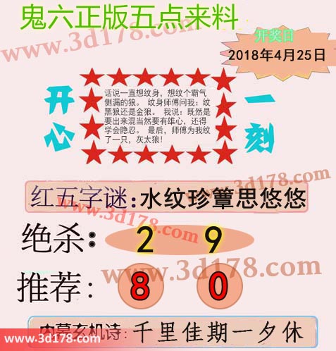 福彩3d第2018108期鬼六五点来料: