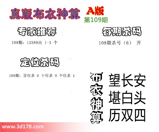 3d布衣神算第109期定位杀码: