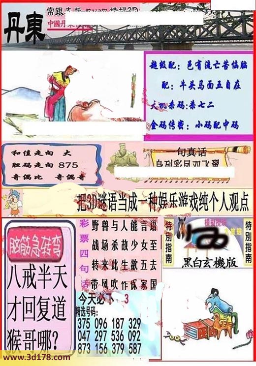 3d之家第2018112期丹东快报图:3d第2018112期丹东快报图详解:天机杀码:杀七二和值走向:大胆码走向:875奇偶比:2:1金码传密:小码配中码精选号码:375 096 187 329 047 297 536 092 873 156 379 587脑筋急转弯:八戒半天才回复道猴哥哪?该丹东图库由3d之家3d图库频道原创,仅供彩民参考,温馨提供。