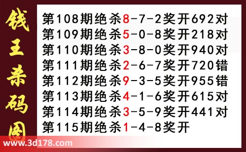 近期3d钱王杀码具体详情: