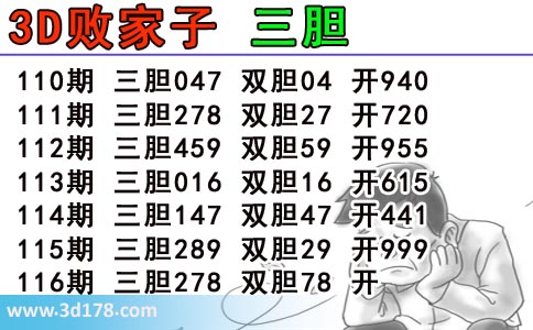 3d第2018116期败家子胆码推荐:
