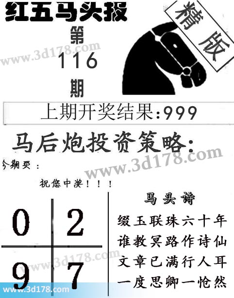 3d第2018116期红五马头报本期马头诗详解: