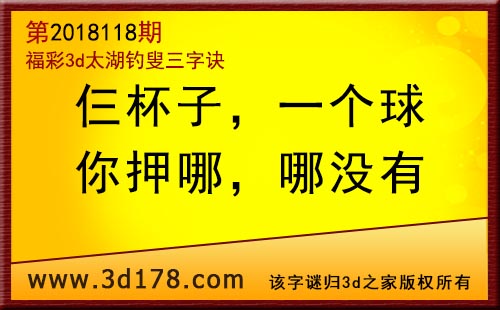 3d第18118期太湖字谜:仨杯子,一个球,你押哪,哪没有