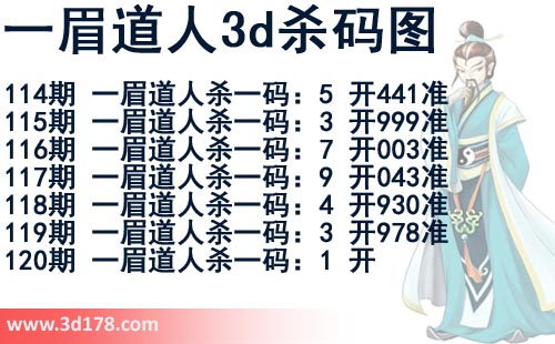 该一眉道人3d杀码图由3d之家3d图库频道原创,仅供彩民参考,温馨提供。
