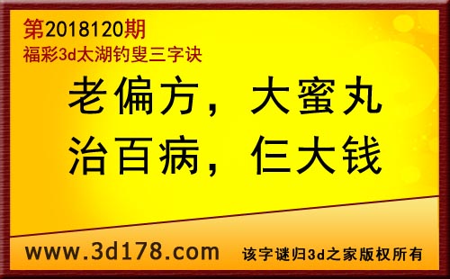 3d第18120期太湖字谜:老偏方,大蜜丸,治百病,仨大钱