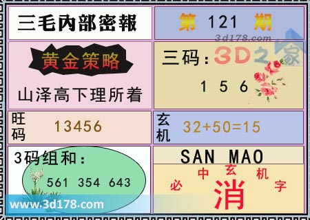 福彩3d第18121期三毛内部密报综合推荐如下: