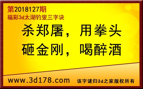 3d第18127期太湖字谜:杀郑屠,用拳头,砸金刚,喝醉酒