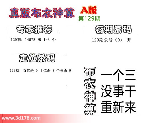 3d之家布衣图库之布衣神算图第2018129期详解: