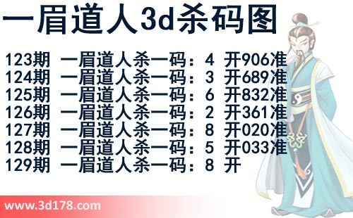 该一眉道人3d杀码图由3d之家3d图库频道原创,仅供彩民参考,温馨提供。