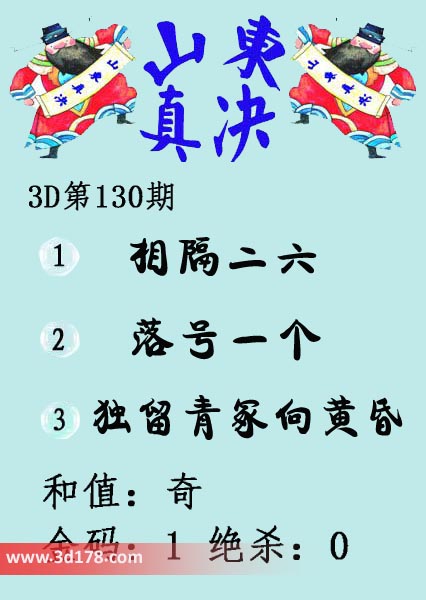 福彩3d第18130期山东真诀图如下所示: