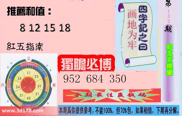 第18132期3d红五图为您推荐:福彩3d第2018132期红五玄机图详细内容:推荐和值:8 12 15 18独胆必博:952 684 350四字记之曰:画地为牢该红五图库由3d之家3d图库频道原创,仅供彩民参考,温馨提供。