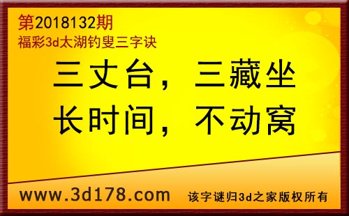 3d第18132期太湖字谜:三丈台,三藏坐,长时间,不动窝