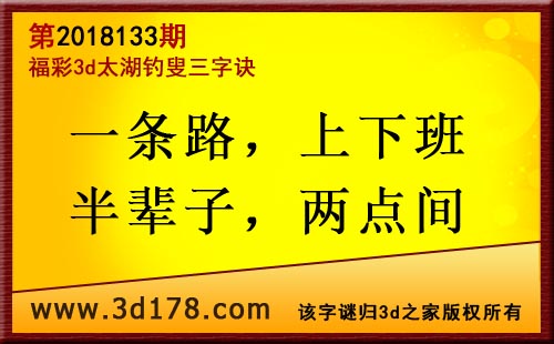 3d第18133期太湖字谜:一条路,上下班,半辈子,两点间