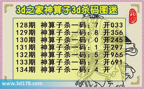 3d第2018134期神算子杀码图: