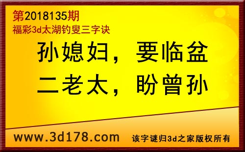 3d第18135期太湖字谜:孙媳妇,要临盆,二老太,盼曾孙