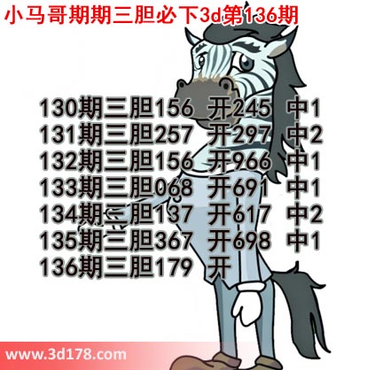 小马哥期期三胆必下136期推荐胆码: