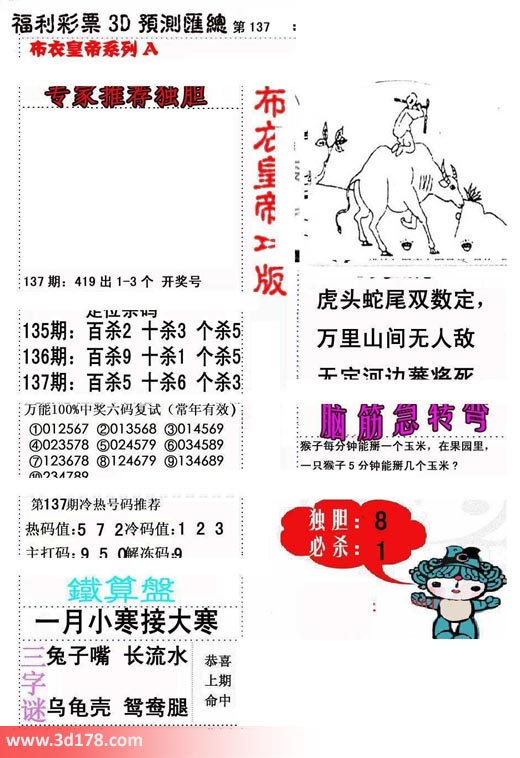 福彩3d第2018137期布衣皇帝A版布衣专家独家推荐: