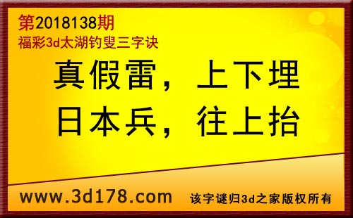 3d第18138期太湖字谜:真假雷,上下埋,日本兵,往上抬
