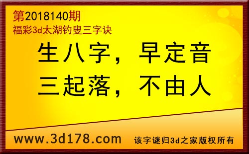 3d第18140期太湖字谜:生八字,早定音,三起落,不由人