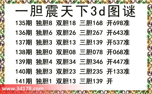 一胆震天下三胆图库由3d之家3d图库频道原创,仅供彩民参考,温馨提供。