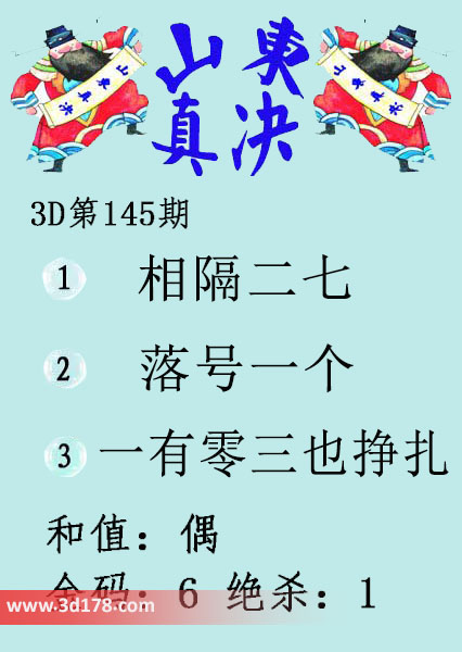 福彩3d第18145期山东真诀图如下所示: