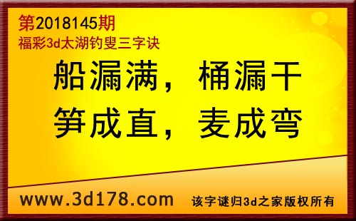 3d第18145期太湖字谜:船漏满,桶漏干,笋成直,麦成弯