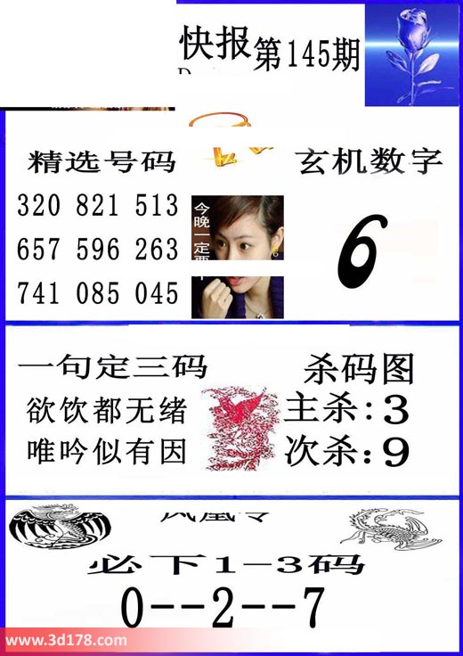 福彩3d凤凰快报图第18145期精选号码推荐: