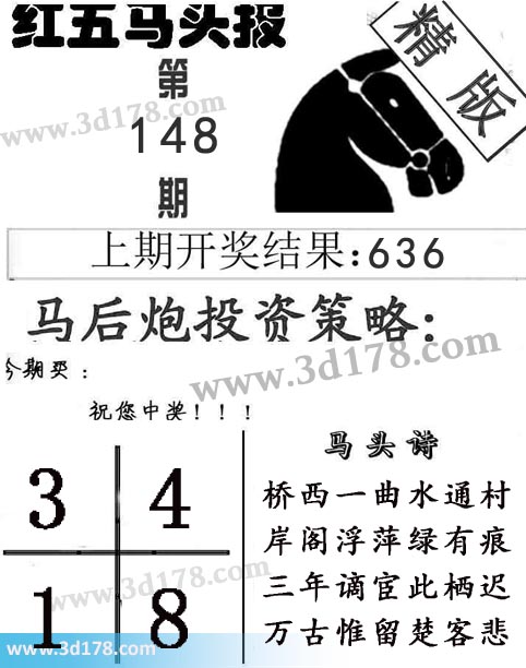 3d第2018148期红五马头报本期马头诗详解: