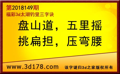 3d第18149期太湖字谜:盘山道,五里摇,挑扁担,压弯腰