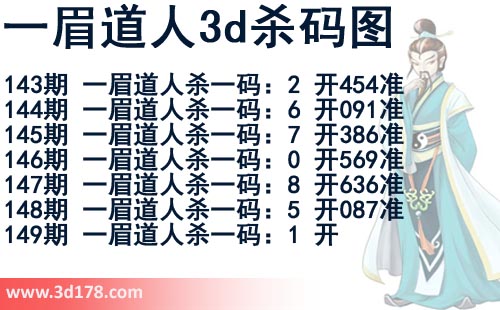该一眉道人3d杀码图由3d之家3d图库频道原创,仅供彩民参考,温馨提供。