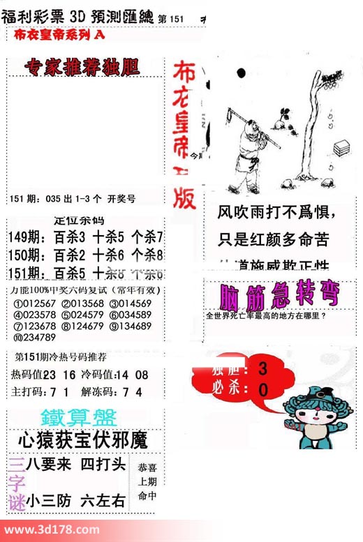 福彩3d第2018151期布衣皇帝A版布衣专家独家推荐: