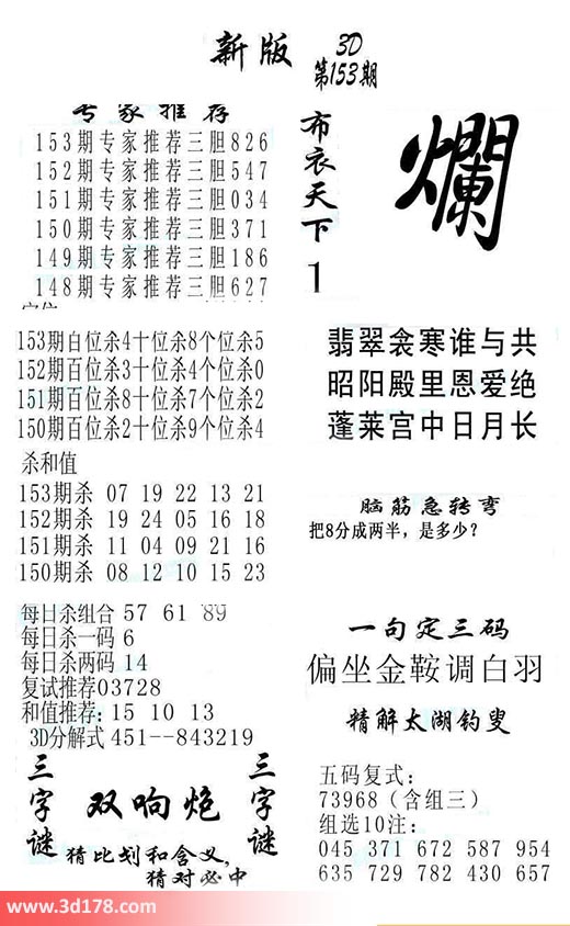 福彩3d第2018153期福彩3d布衣天下新版: