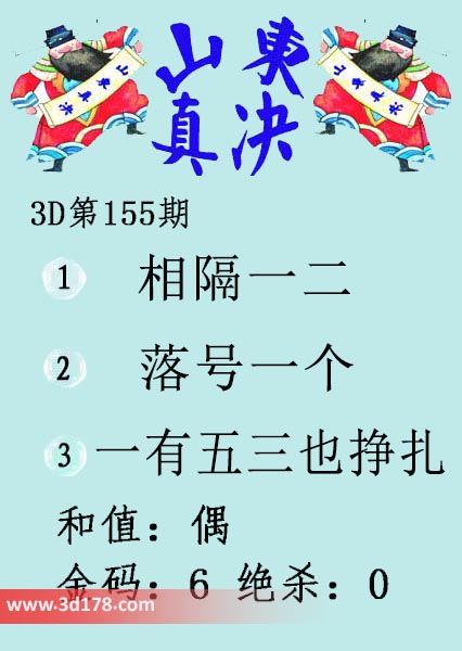 福彩3d第18155期山东真诀图如下所示: