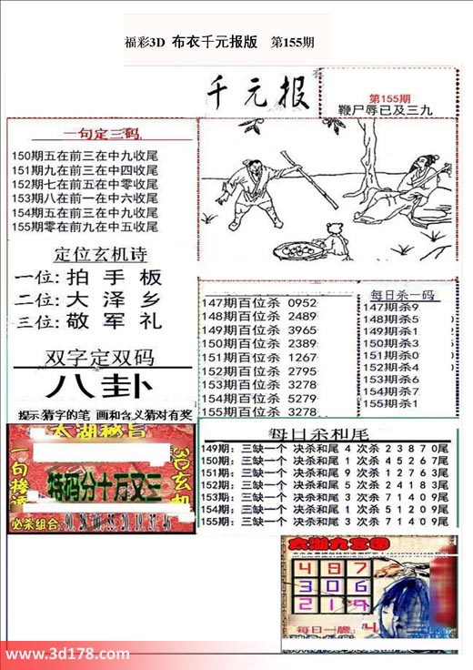 福彩3d布衣图库布衣千元报第2018155期定位玄机诗: