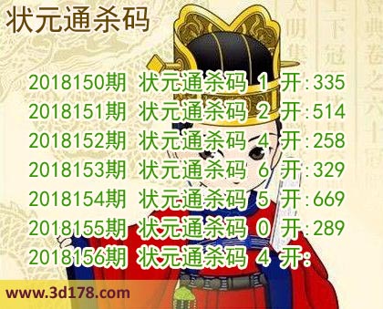 第18156期3d状元通杀码图杀一码推荐: