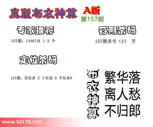 3d之家布衣图库之布衣神算图第2018157期详解: