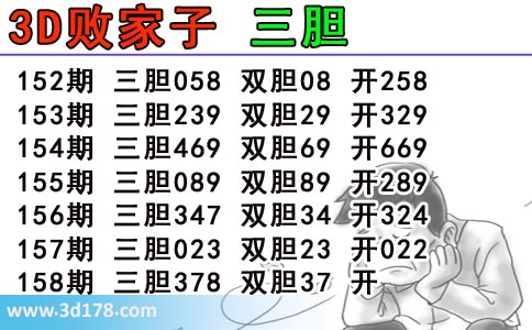 3d第2018158期败家子胆码推荐: