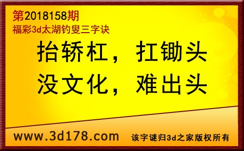 3d第18158期太湖字谜:抬轿杠,扛锄头,没文化,难出头