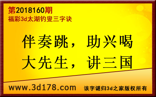 3d第18160期太湖字谜:伴奏跳,助兴喝,大先生,讲三国