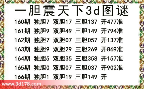 本期一胆震天下3d图谜: