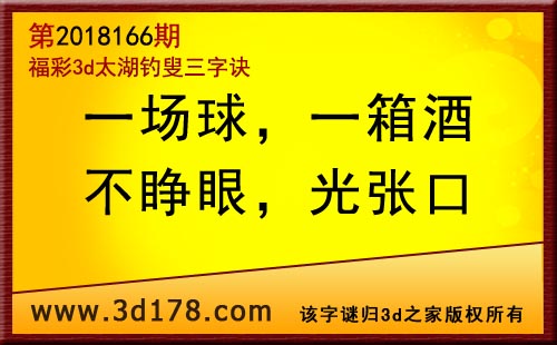 3d第18166期太湖字谜:一场球,一箱酒,不睁眼,光张口