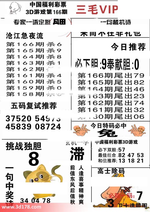 3d第2018166期三毛VIP详解: