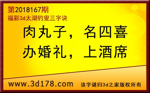 3d第18167期太湖字谜:肉丸子,名四喜,办婚礼,上酒席