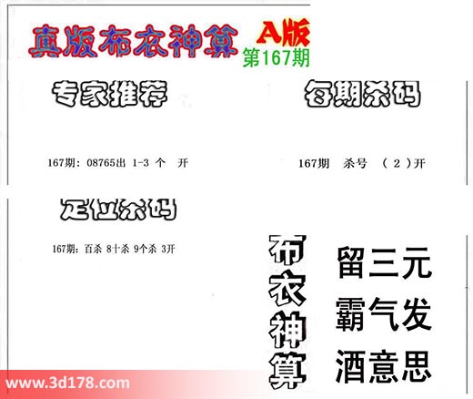 3d之家布衣图库之布衣神算图第2018167期详解: