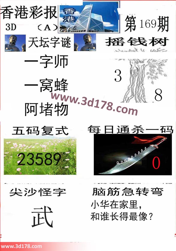 3d香港彩报第18169期摇钱树:本期3d香港彩报图详情如下:天坛字谜:一字师,一窝蜂,阿堵物摇钱树:3 8五码复式:23589每日通杀一码:0脑筋急转筋:小华在家里,和谁长得最像?该香港彩报由3d之家3d图库频道原创,仅供彩民参考,温馨提供。
