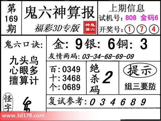 3d第18169期鬼六神算报为您推荐鬼六口诀: