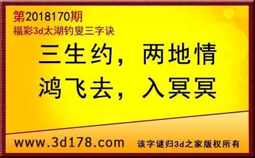 3d第18170期太湖字谜:三生约,两地情,鸿飞去,入冥冥